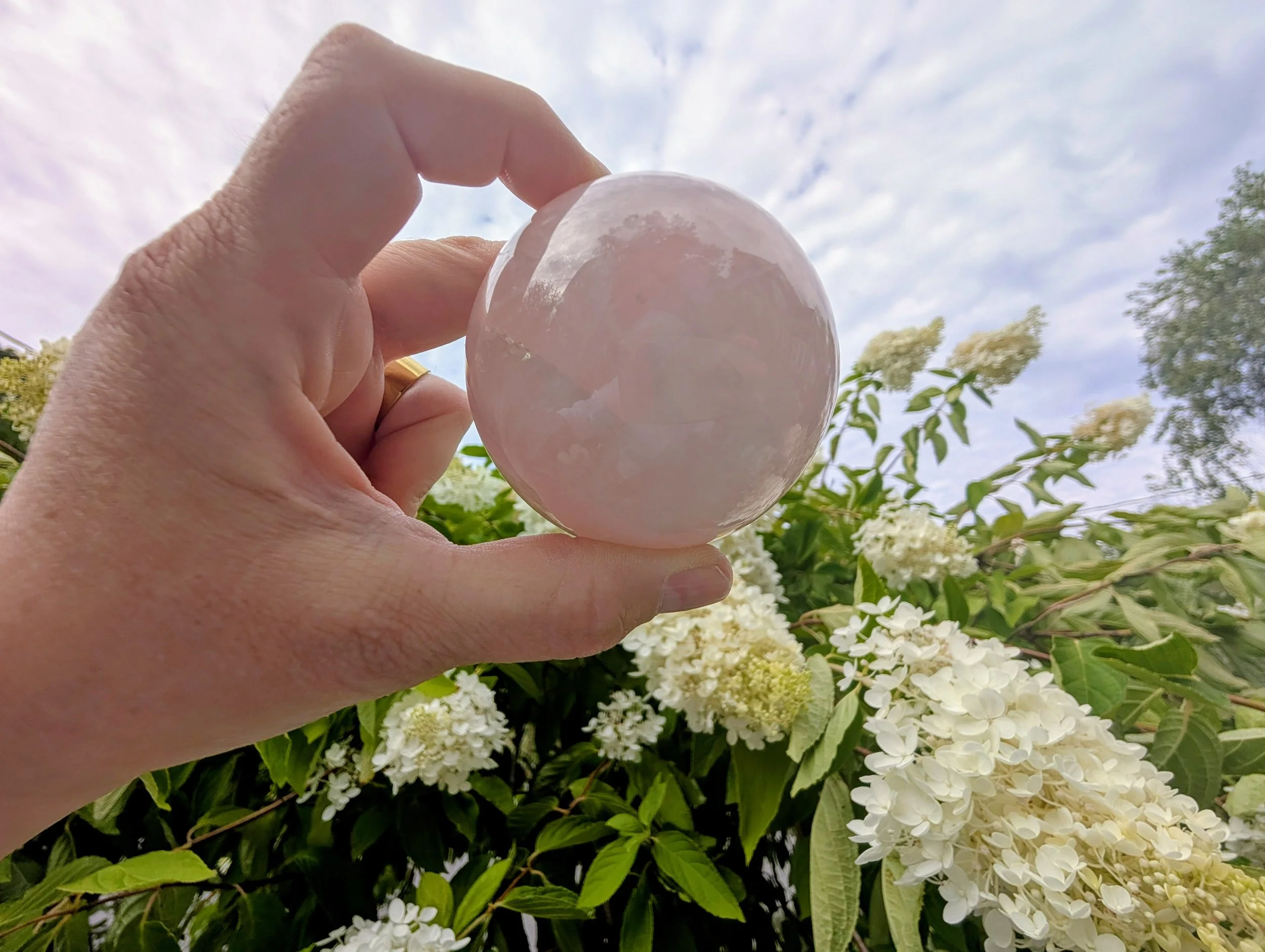 Rose Quartz spheres sourced by Eric and Kathleen Gendron, Owners of ravenstone in Lynn, MA.